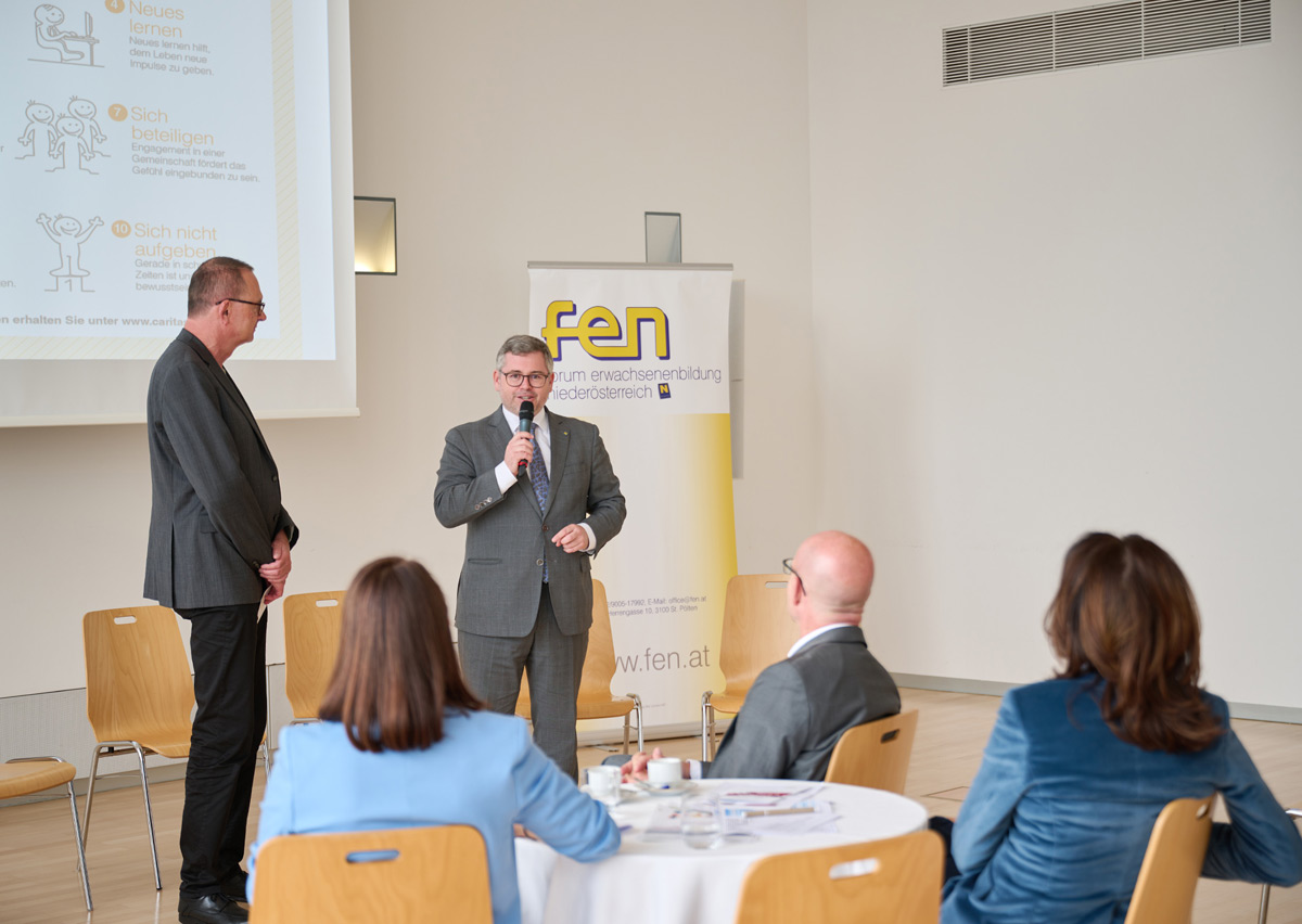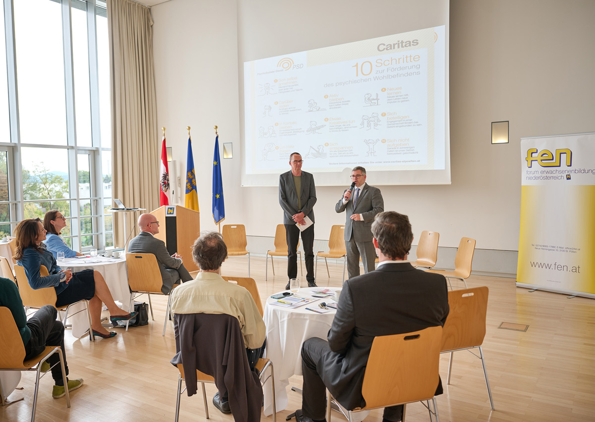Der für die Erwachsenenbildung in Niederösterreich zuständige Landesrat Ludwig Schleritzko erinnerte in seiner Grußbotschaft an die einschneidenden Veränderungen, die sowohl Covid als auch der Ukraine-Krieg für uns im Alltag gebracht haben und bringen. Sich relevantes Wissen anzueignen und handlungsfähig zu bleiben sind zentrale Faktoren um Krisen zu bewältigen und resilient zu werden – hier kommt der Erwachsenenbildung in NÖ mit ihren Angeboten für die breite Bevölkerung eine bedeutende Rolle zu.